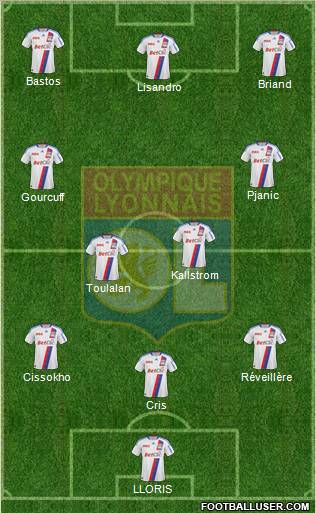 Lloris · Cissokho · Lovren/Mensah · Cris/Britos · Réveillère · Gonalons/Ndinga · Pjanic · Gourcuff/Grenier · Ederson/Lisandro · Briand/Pied/Lacazette · Lisandro/Gomis
