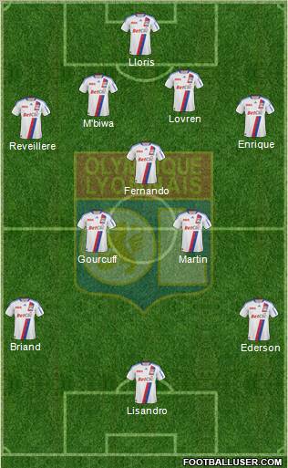 LLORIS · LOVREN · CRIS · CISSOKHO · REVEILLERE · GONALONS · PJANIC · GOURCUFF · BASTOS · LISANDRO · GOMIS