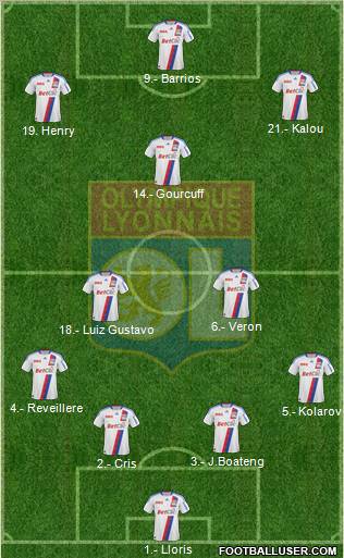 Lisandro · Lacazette · Bastos · Gourcuff · Martin · Gonalons · Réveillère · Cissokho · Garay · Lovren · Lloris