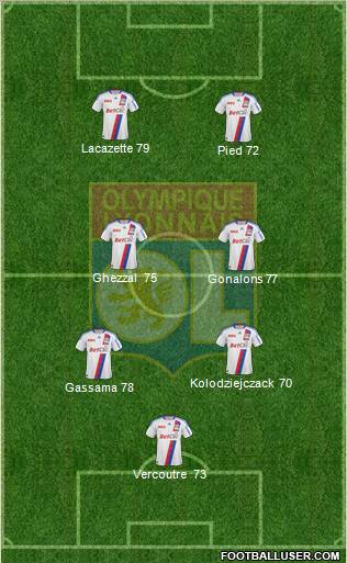 Lloris · Cris · Réveillére · Cissokho · Toulalan · Gourcuff · Kallstrom · Gomis · Pjanic · Bastos · Lopez