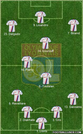 H.Lloris · Cris · A.Rami · A.Réveillère · P.Méxes · M.Gonalons · K.Honda · J.Pied · M.Martin · Ganso · L.Lopez