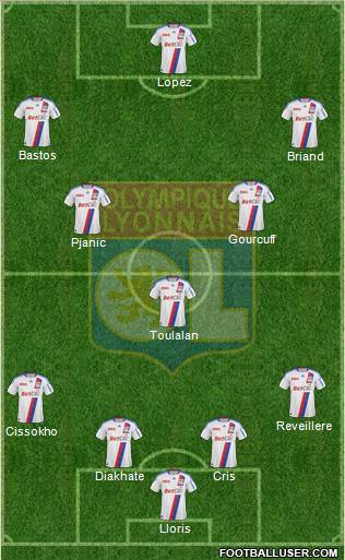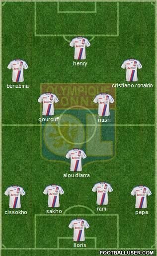 Lloris · Cris · Abidal · Reveillere · Cacapa · Essien · Toulalan · Juninho · Lisandro · Benzema · Fred
