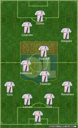 Lloris · Cris · Lovren · Cissokho · Reveillere · Toulalan · Kallstrom · Y.Gourcuff · Michael Bastos · J.Briand · L.Lopez