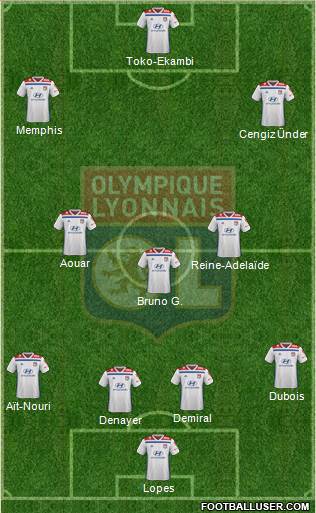 Lopes · Godin · Denayer · Dubois · Shulz · Guimaraes · Aouar · Adélaïde · Matuidi · Memphis · Dembele