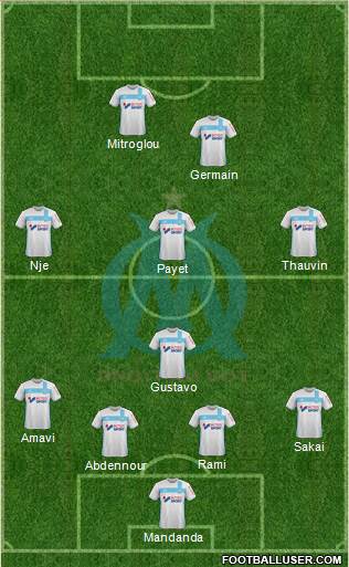 Mandanda · Abdennour · Rami · Sakai · Amavi · Luiz Gustavo · Sanson · Payet · Thauvin · Ocampos · Germain