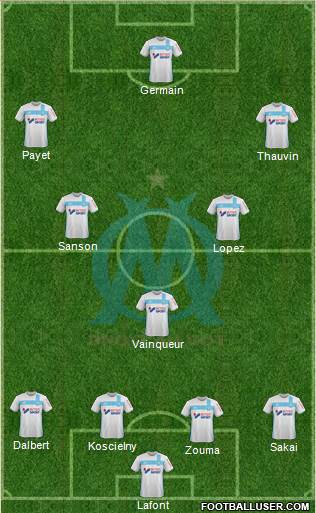 Germain · Thauvin · Payet · Maxime Lopez · Sanson · Luiz Gustavo · Sakai · Evra · Rami · Rolando · Mandanda