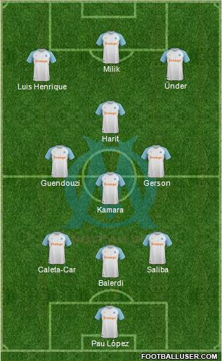 Lopez · Caleta-Car · Saliba · Gersion · Rongier · Lirola · Payet · Gendouzi · Dieng · Under · Milik