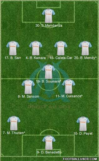 Mandanda · Caleta-Car · Alvaro · Amavi · Sakai · Kamara · Cuisance · Rongier · Payet · Thauvin · Benedetto
