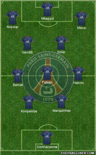 돈나룸마 · 마르키뉴스 · 라모스 · 다닐루 · 하키미 · 누누 · 베라티 · 비티냐 · 네이마르 · 메시 · 음바페