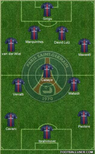 99- G. Donnarumma · 37- M. Skriniar* · 5- Marquinhos · 25- N. Mendes · 2- A. Hakimi · 6- N. Kanté* · 17- Vitinha · 7- K. Mbappé · 19- M. Diaby* · 10- Neymar · 9- R. Kolo Muani*