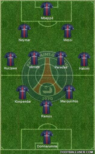 Gianluigi Donnarumma · Presnel Kimpembe · Sergio Ramos · Achraf Hakimi · Nuno Mendes · Marquinhos · Marco Verratti · Fabian Ruiz · Lionel Messi · Neymar Júnior · Kylian Mbappé