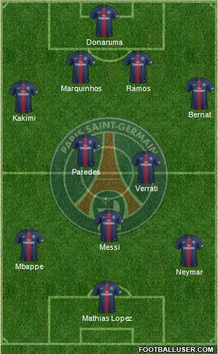 Mbappé · Messi · C.Soler · Fabián · Vitinha · Verratti · Hakimi · Juan Bernat · Sergio Ramos · Marquinhos © · Donnarumma