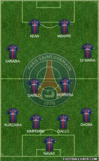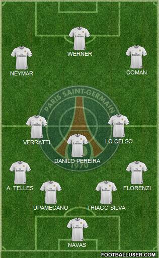 Donarruma · Marquinhos · Kimpembe · Ramos · Bernat · Hakimi · Verrati · Wijnaldum · Di Maria · Neymar · Mbappe