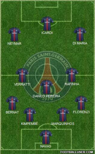 NAVAS · KIMPEMBÉ · MARQUINHOS · BERNAT · AZPILICUETA · DANILO PEREIRA · VERRATTI · WIJNALDUM · NEYMAR · PORTU · KANE