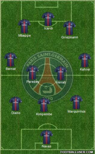 Mbappe · Ginola · Neymar · Di Maria · Beckham · Veratti · Sahko · Daniel Alves · Marquinhos · Thiago Silva · Trapp