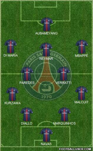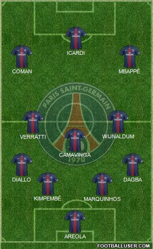 16- S. Rico · 1- K. Navas · 4- T. Kehrer · 22- A. Diallo · 5- Marquinhos · 3- P. Kimpembe · 31- C. Dagba · 20- L. Kurzawa · 24- A. Florenzi · 14- J. Bernat · 15- D. Pereira · 8- L. Paredes · 21- A. Herrera · 12- Rafinha · 6- M. Verratti · 11- Á. Di María · 19- P. Sarabia · 23- J. Draxler · 7- K. Mbappé · 10- Neymar · 18- M. Kean · 9- M. Icardi