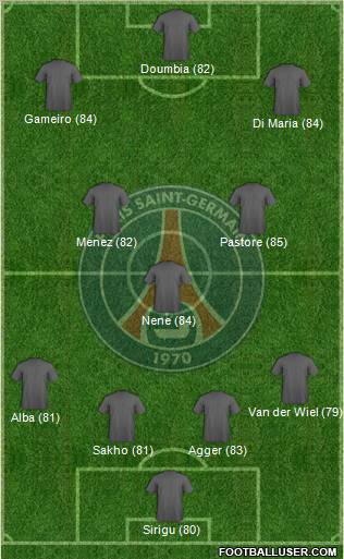 Sirigu · ? · Jallet/Ceara · Lugano/Bisevac · Sakho · Matuidi · Beckham · Nene · Pastore · Tevez · Gameiro
