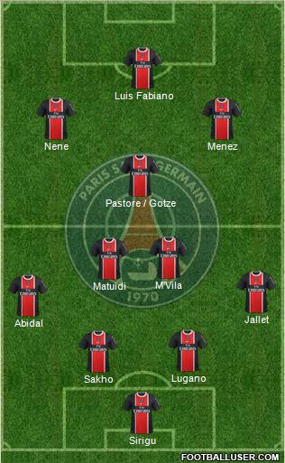 Sirigu · Sakho · Lugano · Balza · Jallet · Pastore · Ménez · Nenê · Tévez · Hoarau · Gameiro