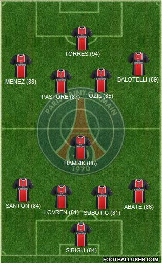 Sirigu · Sakho · Lugano · Abidal · Jallet · Matuidi · M'Vila · Pastore / Gotze · Nene · Menez · Luis Fabiano