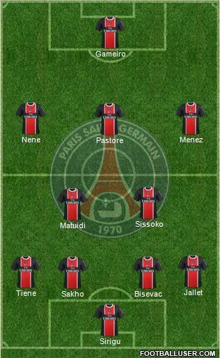 Sirigu · Camara · Lugano · Jallet · Armand · Chantôme · Matuidi · Bodmer · Pastore · Menez · Gameiro
