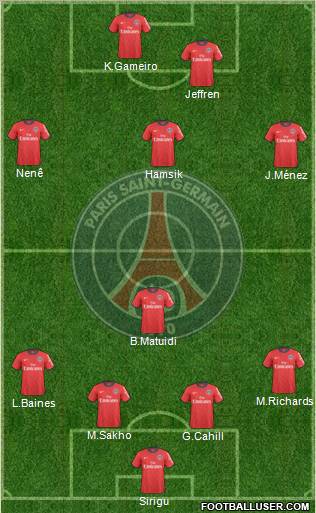 Sirigu · Lugano · Sakho · Armand · Ceara · Chantôme · Matuidi · Pastore · Nenê · Menez · Gameiro