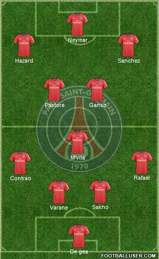S.Sirigu · Sakho · Lugano · Abidal · Maicon · M'Vila · Pastore · Ganso · Menez · Neymar · Gameiro