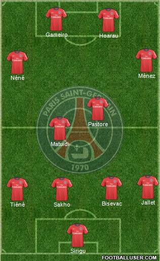 Sirigu · Sakho · Lugano · Balzaretti · Jallet · Chantome · Matuidi / Sissoko · Pastore · Nene · Menez · Gameiro