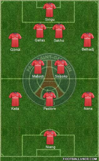 Sirigu · Sakho · Lugano · Tiene · Jallet · Sissoko · Matuidi · Pastore · Nenê · Menez · Gameiro