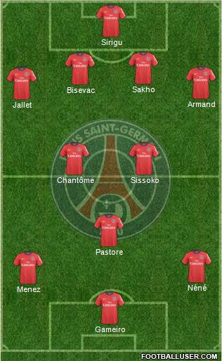 Sirigu · Jallet/Ceara · Bisevac · Sakho · Armand · Matuidi · Sissoko · Pastore · Menez · Nene · Gameiro