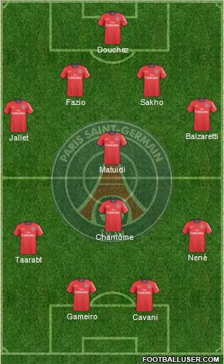 Gameiro · Hoarau · Pastore · Menez · Néné · Chantôme · Matuidi · Jallet · Armand · Sakho · Douchez
