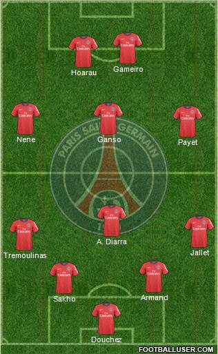 Gameiro · Ganso · Ménez · Néné · Chantome · Fernando · jallet · Andre santos · Sakho · Kaboul · Douchez