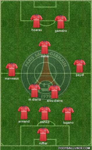 Gameiro · Menez · Nenê · Ganso · Chantôme · A.Diarra · Tiéné · Jallet · Bisevac · Sakho · Douchez