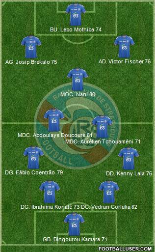 GB. Bingourou Kamara 71 · DC. Ibrahima Konaté 73 · DC. Vedran Corluka 82 · DD. Kenny Lala 76 · DG. Fábio Coentrão 79 · MDC. Aurélien Tchouaméni 71 · MDC. Abdoulaye Doucouré 81 · MOC. Nani 80 · AG. Josip Brekalo 75 · AD. Victor Fischer 76 · BU. Lebo Mothiba 74