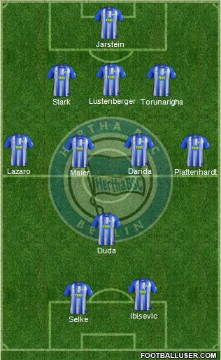 Jarstein · Rekik · Stark · Plattenhardt · Mittelstadt · Maier · Grujic · Kalou · Duda · Dilrosun · Selke