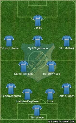 M. Babbel · 1. T. Wiese · 15. M. Delpierre · 13. D. Williams · 16. F. Johnson · 2. A. Beck=c · 6. S. Rudy · 22. R. Firmino · 21. P. Ochs · 23. S. Salihović · 11. E. Derdiyok · 9. S. Schipplock