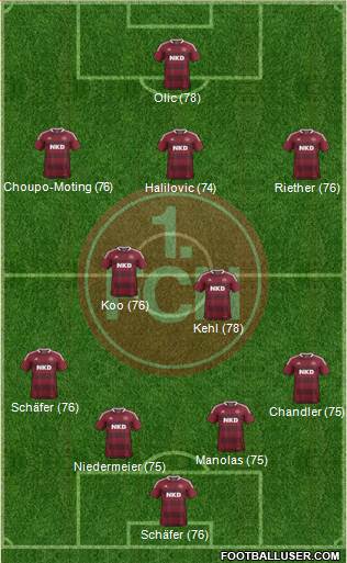 Schäfer (76) · Huth (77) ? · Niedermeier (75) · Cavanda (74) ? · Chandler (75) · Kehl (78) · Koo (76) · Halilovic (74) · Traore (77) · Olic (78) · Choupo-Moting (76)