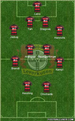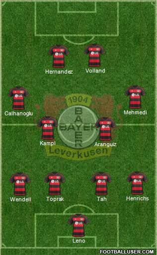 Leno · Tah · Toprak · Wendell · Henrichs · Bender · Kampl · Calhanoglu · Volland · Mehmedi · Chicharito