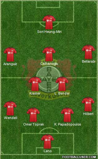 Leno · Wendell · Jonathan Tah · Donati · Papadopoulos · Kramer · Lars Bender · Calhanoglu · Bellarabi · Chicharito · Kiessling