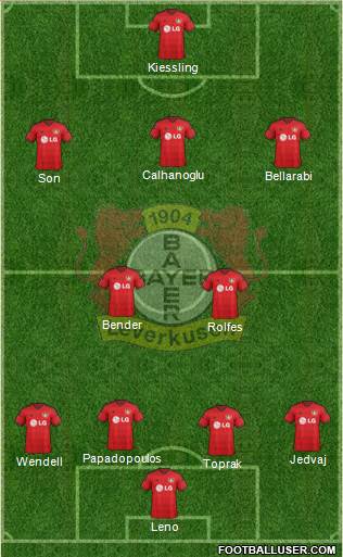 Leno · Toprak · K. Papadopoulos · Wendell · Hilbert · Kramer · L. Bender · Son Heung-Min · Calhanoglu · Bellarabi · Kießling