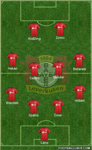 Leno · Toprak · Spahic · Hilbert · Wendell · Bender · Castro · Son · Bellarabi · Calhanoglu · Kiessling
