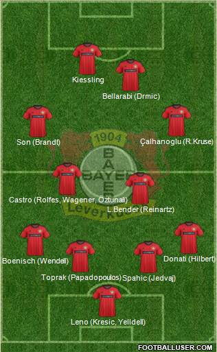 Leno · Spahic · Ömer · Boenisch · Jedvaj · Rolfes · Castro · Son · Bellarabi · Hakan · Kießling