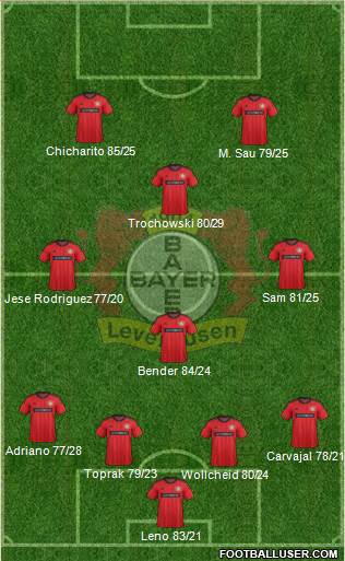 Leno · Toprak · Spahic · Donati · Boenisch · Castro · L.Bender · Reinartz · Son Heun-Min · Sam · Kiessling