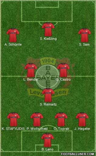Leno · Stafylidis · Donati · Toprak · Spahic · Reinartz · Bender · Can · Kruse/Sam · Son · Kiessling