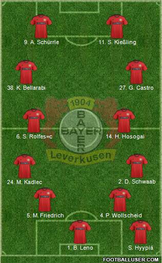 Bernd Leno · Ömer Toprak · Stefan Reinartz · Michal Kadlec · Gonzalo Castro · Simon Rolfes · Lars Bender · Michael Ballack · André Schürrle · Eren Derdiyok · Stefan Kiessling