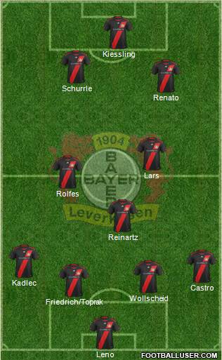 Adler · Toprak · Reinartz · Castro · Kadlec · Bender · Rolfes · Barnetta · Sam · Augusto · Schurrle
