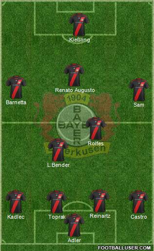 Leno · Toprak · Wollscheid · Castro · Kadlec · Bender · Rolfes · Renato Augusto · Schurrle · Sidney Sam · Kiessling
