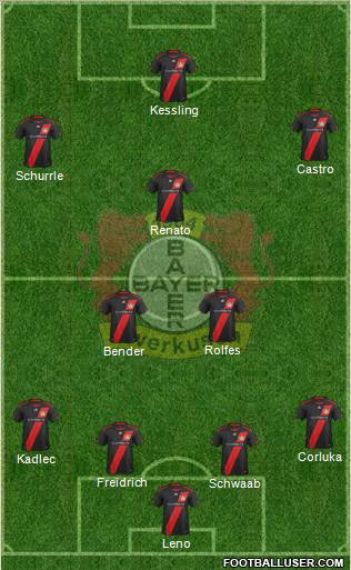 Leno · Toprak · Schwaab · Kadlec · da Costa · Reinartz · Castro · Schürrle · Renato Augusto · Ortega · Kießling