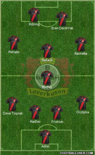 Leno · Evans · Papastathopoulos · Toprak · Castro · Vidal · Ballack · Renato Augusto · Sam · Schürrle · Kießling