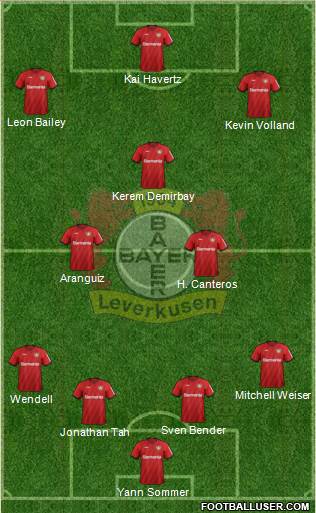 Hradecky · Bender · Tah · Wendell · Arias · Palacios · Demirbay · Wirtz · Bailey · Diaby · Schick