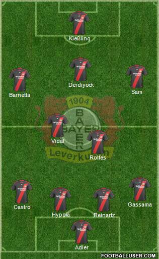 Agger · Hypiä · Kadlec · da Costa · Ballack · Vidal · Renato Augusto · Sam · Schürrle · Derdyiok